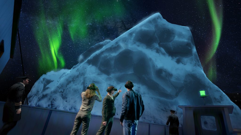 El recorrido sigue por la cubierta, con vistas al océano durante el atardecer, y guía a los visitantes por la gran escalinata hasta la noche del emblemático baile de gala. La experiencia finaliza en la cabina del capitán, justo en el momento del impactante choque contra el iceberg.